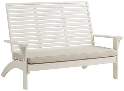 The high slatted back of this outdoor bench creates an imposing silhouette that draws the eye without overdoing it. A subtle tilt in the backrest, wide armrests, and a foam padded cushion in beige make for a comfortable seat guests won't want to leave.Read More