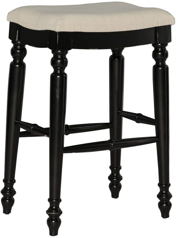 Unique and stylish, this backless bar stool will add eye-catching design to your home bar, kitchen counter or high top table. The backless stool features elegant turned legs and a padded comfortable curved saddle seat. The neutral linen weave 100% polyester fabric complements the antique black finish and is easy to maintain.Read More