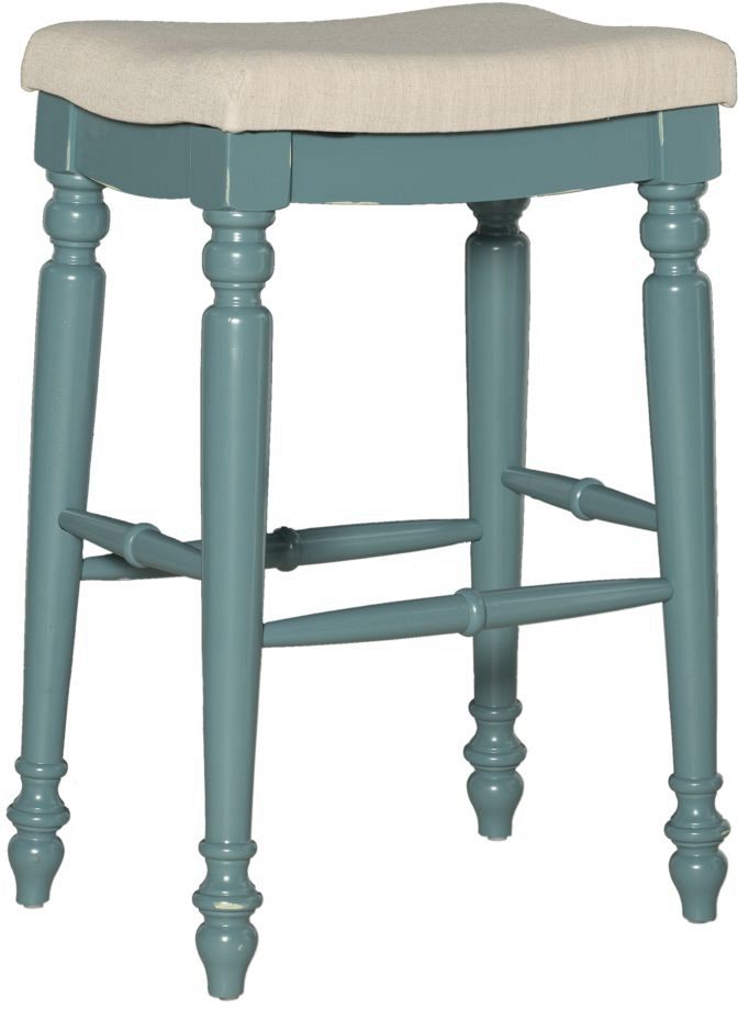 Unique and stylish, this backless bar stool will add eye-catching design to your home bar, kitchen counter or high top table. The backless stool features elegant turned legs and a padded comfortable curved saddle seat. The neutral linen weave 100% polyester fabric complements the antique blue finish and is easy to maintain.Read More