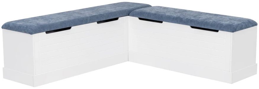 It's clean L-shape maximizes corner seating without adding bulk, and each seat lifts to reveal hidden storage for stashing everyday items. With subtle horizontal panel detailing and cutout handles for ease, this bench brings streamlined style and smart organization to breakfast nooks, small dining areas, or entryways.