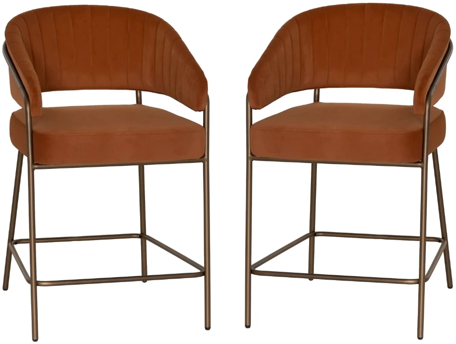 The plush caramel microfiber upholstery offers luxurious comfort, while the gracefully designed back features channel stitching that enhances style and ergonomic support. With a seat height of 25 inches and a versatile design that complements various decor styles, these stools promise to elevate your space with inviting warmth and enduring elegance.