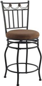 The elegance and unique style of this 24" Swag Counter Stool will carry throughout your kitchen, dining, or home pub area. Crafted of metal and highlighted with subtle curves and a distinctive back, this stool is a positively striking addition to your home. The cushion is piled high for extra comfort and covered in a brown fabric. This stool is elegant and versatile making it the perfect choice for any gathering area. 275 pound weight limit.Read More