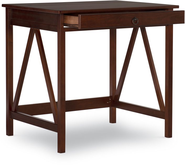 Our Titian Collection has a simple yet eye-catching design that is matched with incredible durability. This versatile laptop desk makes good use of space with ample work and display space. A single, wide drawer provides ample hidden storage space for small items or even a keyboard. A neutral, classic Antique Tobacco finish allows this piece to easily complement your homes decor.Read More