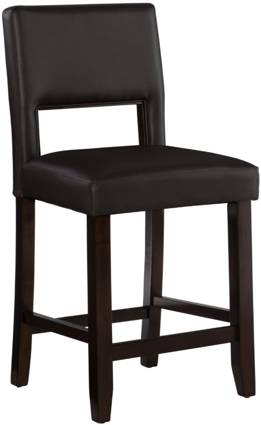 Add interest to your home with this beautiful modern inspired counter stool. The back detail has a sleek rectangular wood trimmed cut out design. The faux leather is easy to clean and will add a pop of pizazz to your home.Read More