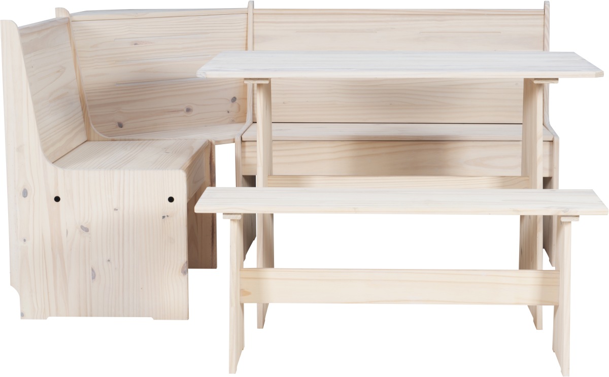 Can be assembled either direction to fit your space. The corner benches have a seat that flips open to a handy storage area. Comes with the table, bench and corner unit. For casual dining or as a great place to do homework or finish that project at home.