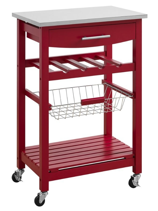A perfect spot to prep with style to spare, this efficient kitchen cart brings modern charm to kitchen and entertainment settings. For storage, a pull-out drawer, wire basket and bottom shelf provide ample space to stash utensils, fruit, serveware and more.Read More