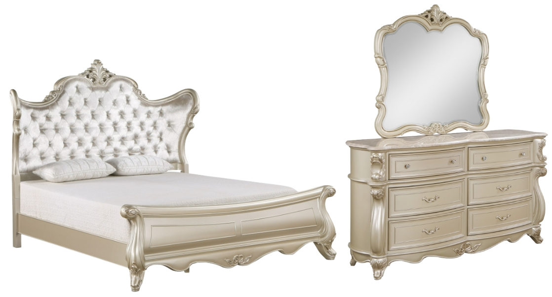 French Provincial Elegance: With a style that reflects the charm and elegance of French countryside homes, the Monique's soft curved lines, intricate carvings, scalloped edges, and decorative moldings add a touch of elegance and sophistication.