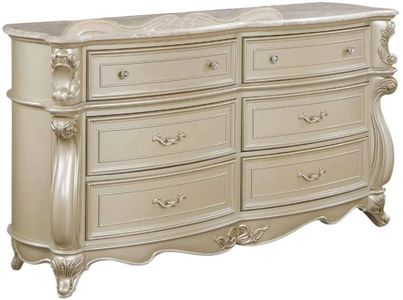 The Monique Marble Top 6 Drawer Dresser in Champagne combines heirloom quality construction with timeless French Provincial elegance. Crafted with poplar solids and birch veneers, this dresser is built for strength and durability.Read More