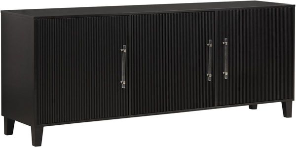 Bruno Caviar TV Console features a multi-step long lasting finish, three doors and cord managementRead More