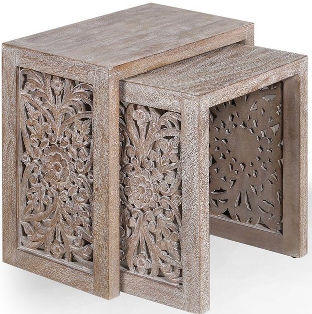 Save some space with these unique nesting tables from the Crossings Eden's collection. They have been sandblasted, whitewashed finish over mango solids.