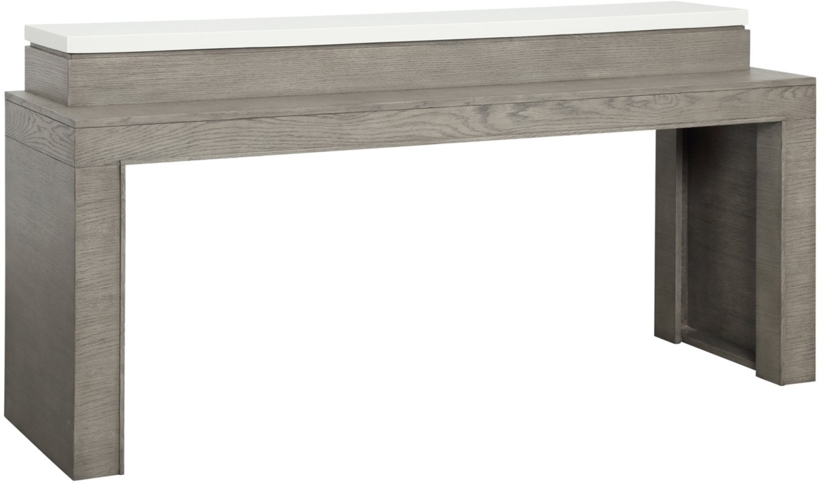 Place it behind a sofa or in a nook to create more seating and an additional dining area. A multifunctional Power Center with dual AC outlet and dual USB port makes the Everywhere Console an ideal location for working from home or surfing the web. A soft Moonstone finish highlights its linear white oak veneer pattern while a quartz top adds elegance and ensures effortless serving and cleanup.