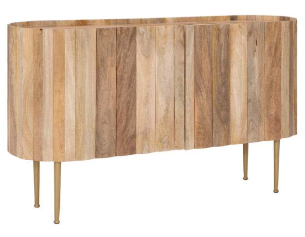 This decorative console brings a rustic charm into any space while also maintaining a sense of modernity. Geometric panels made of solid mango wood line the oval-shaped frame to create an uninterrupted facade when the doors are closed.Read More