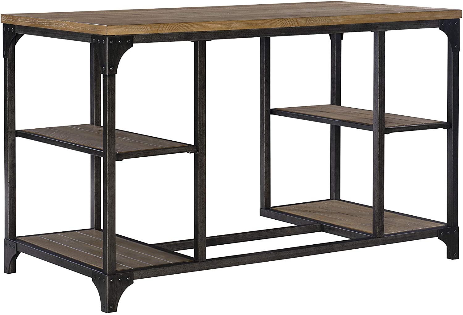 Marrying vintage industrial and rustic touches, the Desk is a relaxed focal point for your home workspace. It delivers an open stance with a wide desktop to host electronics and other office essentials. Its industrial look is reinforced with a metal base showing off bracket and rivet accents to really set the tone.Read More