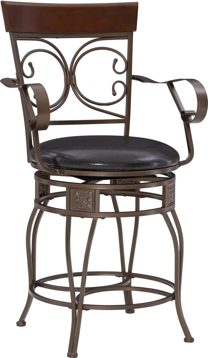 Rustic charm and reinforced metal construction combine to create this classy and comfortable counter stool for big & tall folks. This generously sized perch features a padded seat upholstered in dark brown faux leather or a solid light gray fabric made with crosshatching that gives it a heathered effect.Read More
