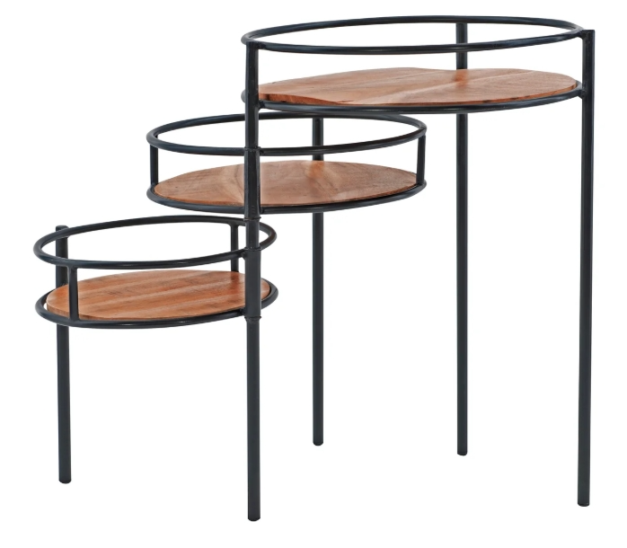 Multiple tiers of natural acacia wood make this plant stand side table the ideal way to showcase cascading greenery, unique succulents, or any other personal collection. A black metal iron frame adds durability without detracting from the display.Read More