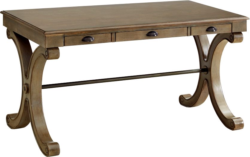 Add an elegant workspace to your living area, bedroom, or home office with the impressive Desk. It delivers a vast top with ample space for a computer or other accessories while three drawers add organization for essentials.Curvy X-legs add grace and the design is tied together with classic cupped drawer pulls in an antique bronze finish.Read More