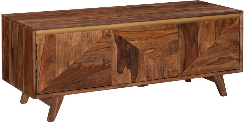 The mix of rustic wood and gold creates a regal style perfect for any home decor. The construction is made of solid sheesham wood, also known as indian rosewood. The solid wood provides strength and stability you can count on along with details in the knots and woodgrain unique to this piece alone.