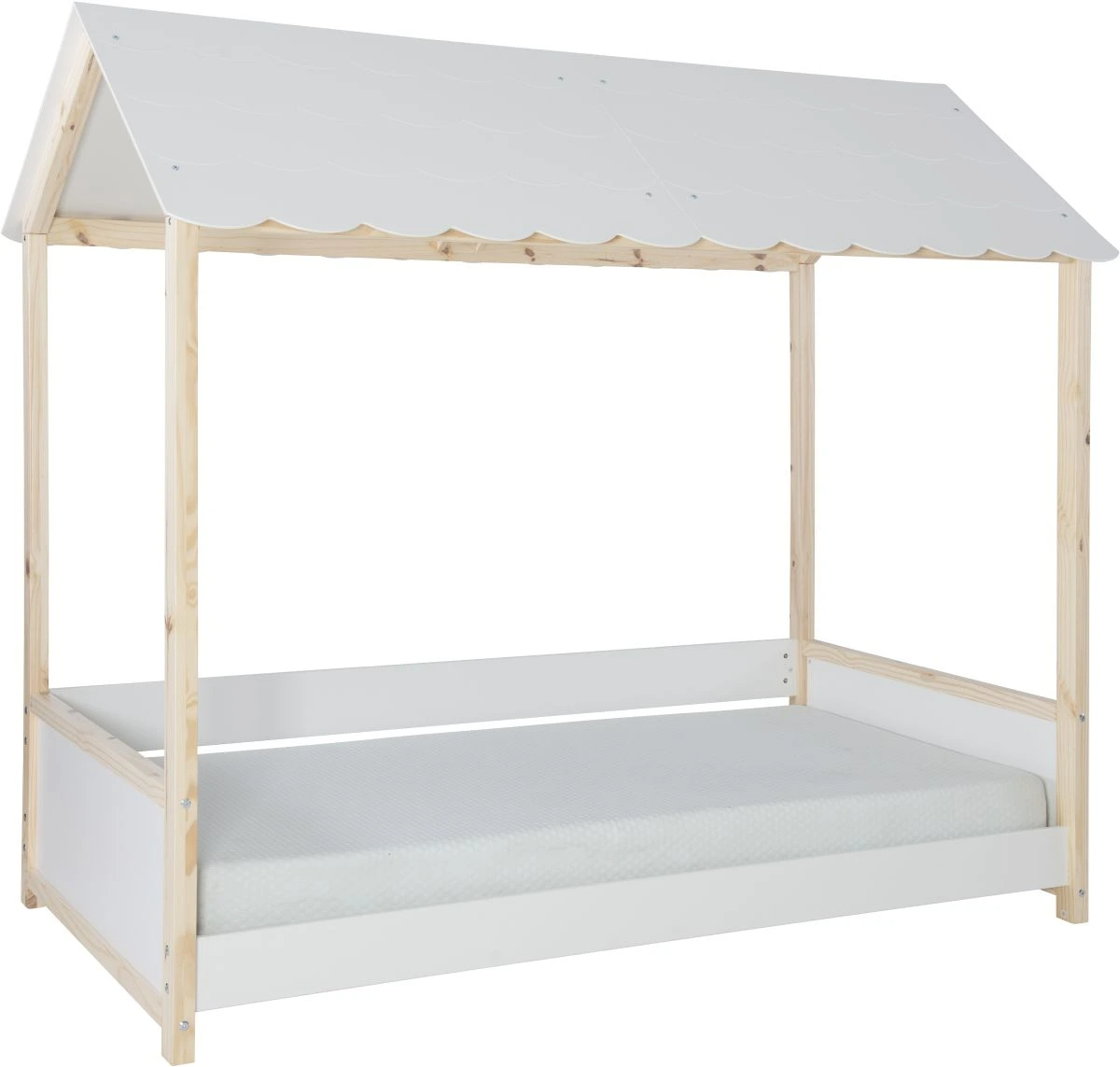 Turn bedtime into a storybook moment with this charming twin bed frame. Its whimsical design makes it just as perfect for playtime as it is for sweet dreams. Customize the look with a full roof, half roof, or no roof at all—your child’s imagination leads the way.Read More