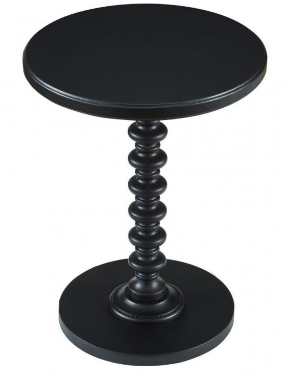 The Black Round Spindle Table features a bright, smooth finish and a trendy, stack-designed base. Its round edges and classic style will add charm to any space. Sized perfectly to sit next to your favorite chair or bedside, the table provides enough space for a lamp or to accommodate household items.Read More