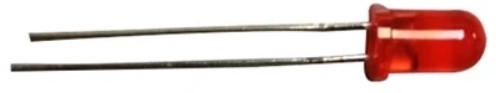 This is a high-brightness output red LED lamp with a 5mm diameter red diffused lens.