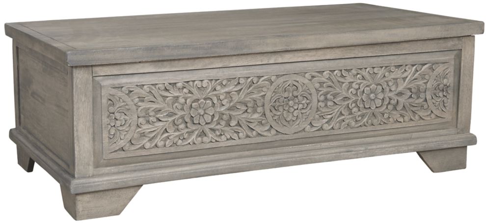 Bring that boho-chic feeling to your space with this cocktail table. Featuring a lift-top design, this piece offers functionality as well as good looks. The engraved decorative pattern lightens the solid feeling of the table. Make your room pretty and practical.