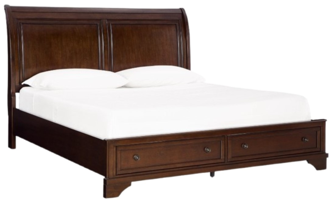 This queen sleigh storage bed has a timeless look and traditional design that dresses up your bedroom. Its warm brown cherry finish adds a casual classic aesthetic, with the double-framed panels on the sleigh headboard complemented by a chic storage footboard.Read More