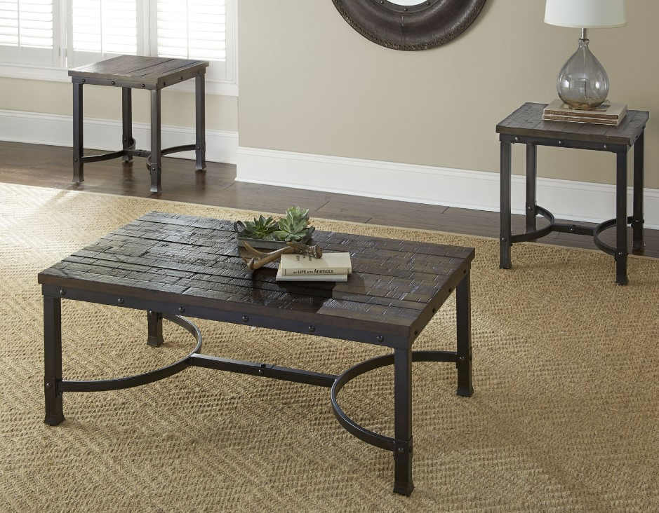 Add a hint of rustic flavor to the room with the Steve Silver End table. Constructed to give the perfect modern countryside look, it features dark iron legs and block style butcher wood table top. Distressed finish fits perfectly in a room.Read More