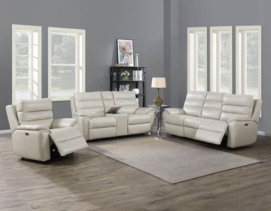 Contemporary styling in a modern ivory leather application, this Duval three-piece power-power reclining group features both power footrest, and articulating power headrest for the ultimate in comfortable seating.Read More